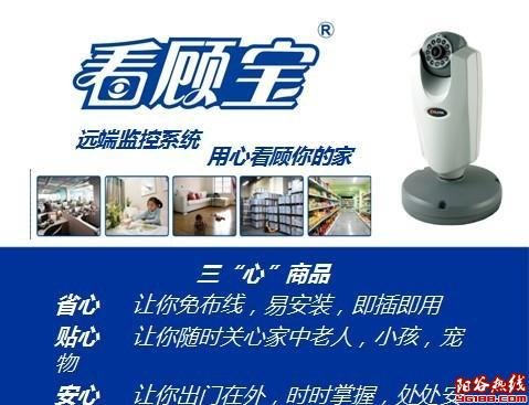 青岛鸿昇沃达电子科技有限公司经销“看顾宝”,此产品首创电源线传输,最方便的远程监控系统,专利灯泡头设计,免布线易安装,即插即用,有高清的红外夜视功能,移动报警功能,能拍照能录像,24小时监控不间断,不管你在多远的地方,只要手机或电脑能上网就能看到监控图像,让您出门在外时时掌握家中或公司的情况,让您省心、贴心、安心!