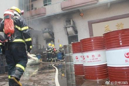 晋江市陈埭镇岸兜村委会附近一鞋厂一层车间流水线机台突发大火