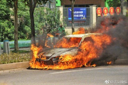 - 光谷一辆轿车自燃 黑色车烧成白色