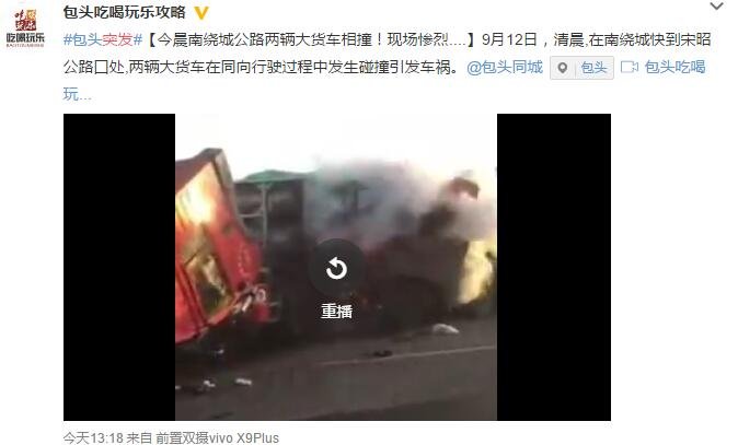 今晨包头南绕城公路两辆大货车相撞!现场惨烈