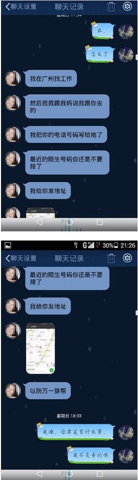 区诗婷与梁欢的聊天截图显示,梁欢曾劝区诗婷不要来广州打暑假工,区诗婷没有听进去。区诗婷抵达广州后让梁欢最近不要接陌生电话,免得穿帮。
