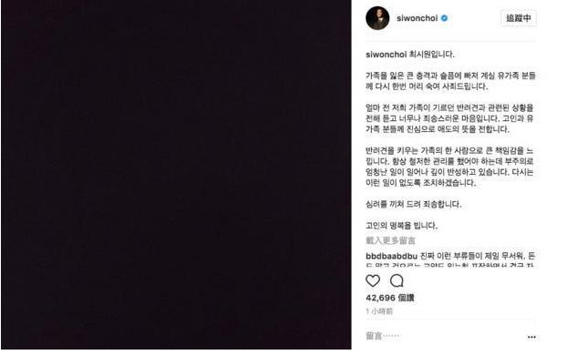 娱乐圈真是个不消停的地方,每分每秒都在搞事情,但是自家宠物咬死人这种事情也着实出人意料,史无前例得不知道让人该怎么反应。崔始源第一时间站出来承认错误,虽然不知道这里面发自肺腑感到道歉的成分多,还是有手段危机公关的成分多,但是至少他在明面上没什么过不去的,所以并没有招来多大抨击。但是身为狗狗主人之一的崔父的表现就让人感到很不舒服。崔父发文说明情况,大意是说邻居被咬伤6天后因败血症死亡,这个的确是事实,但是败血症不能排除是在治疗过 程中 二度感染的。