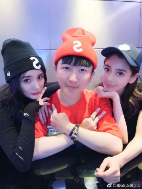 12月7日,张大大在微博上晒出一组与杨幂和Angelababy的合影。张大大身穿橘色短袖,戴着橘色帽子,杨幂全身都是一码色,带着黑色毛衣戴着黑色帽子,Baby穿着黑色短袖,戴着一个棒球帽。两位辣妈同框颜值爆表。