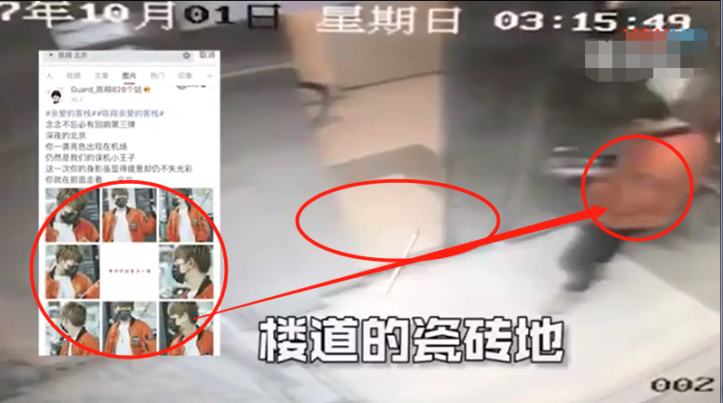根据粉丝接机的图片可证明电梯是陈翔本人,楼道的瓷砖地大家记住,陈翔从这里下楼的